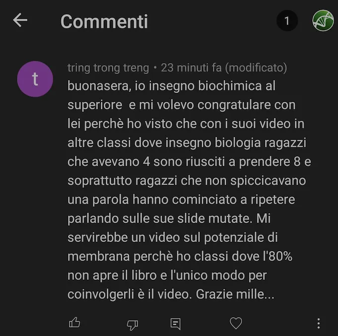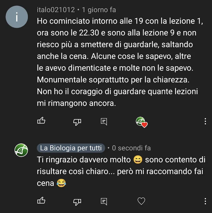 Ma il progetto ha preso piede in fretta, e ha avuto subito un impatto concreto: oggi il canale conta oltre 150.000 iscritti e milioni di visualizzazioni, diventando il principale canale di Biologia in Italia.